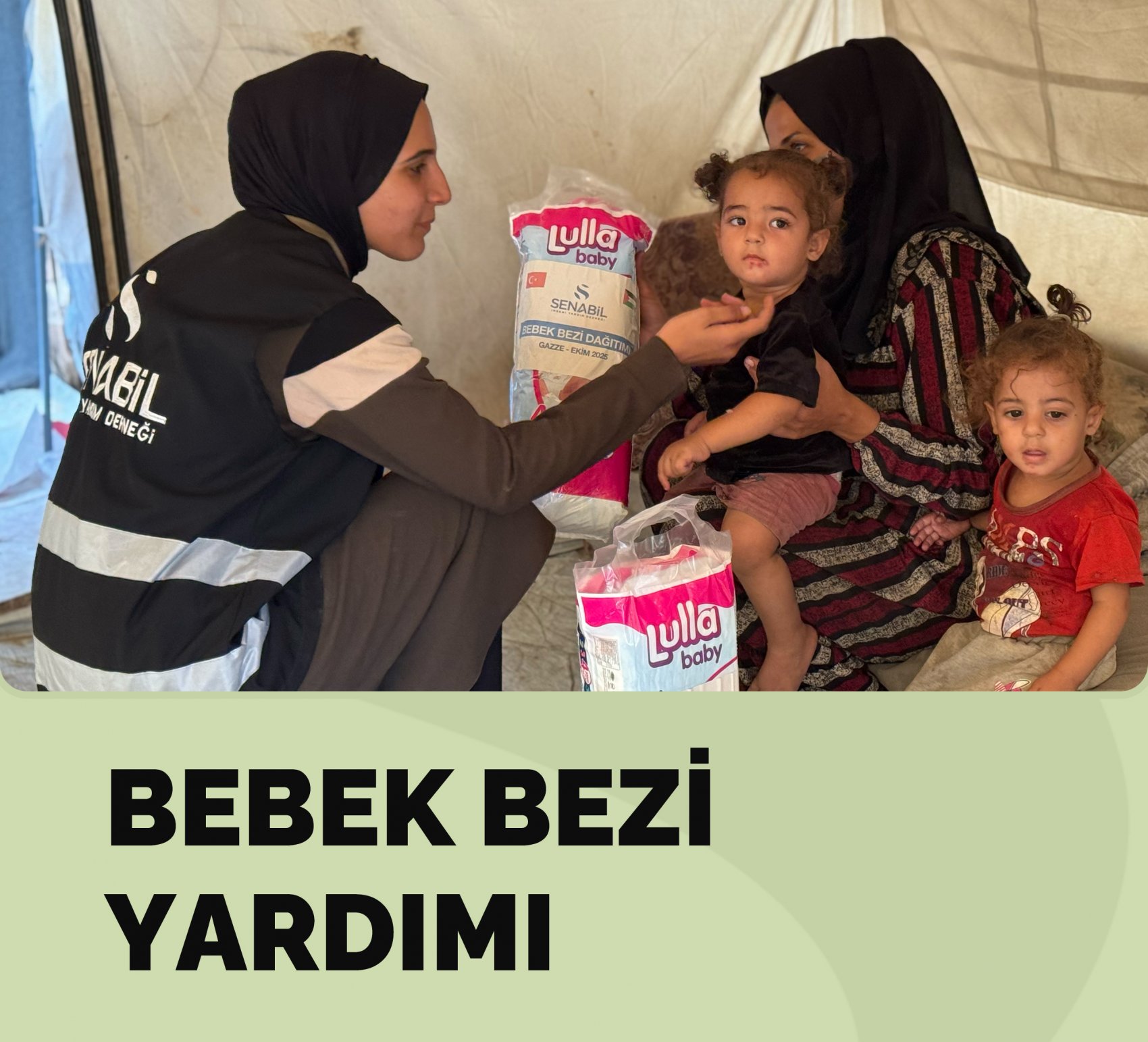 Senabil İnsani Yardım Derneği olarak Gazze’nin içinden tedarik edilecek hazır bezleri Gazzeli ailelere ulaştırıyoruz. Zorlu savaş şartları, soykırım, açlık ve yerlerinden göç etmek zorunda kalan Filistinlilerin hayatlarını bir nebze olsun kolaylaştırmak için çalışıyoruz.
