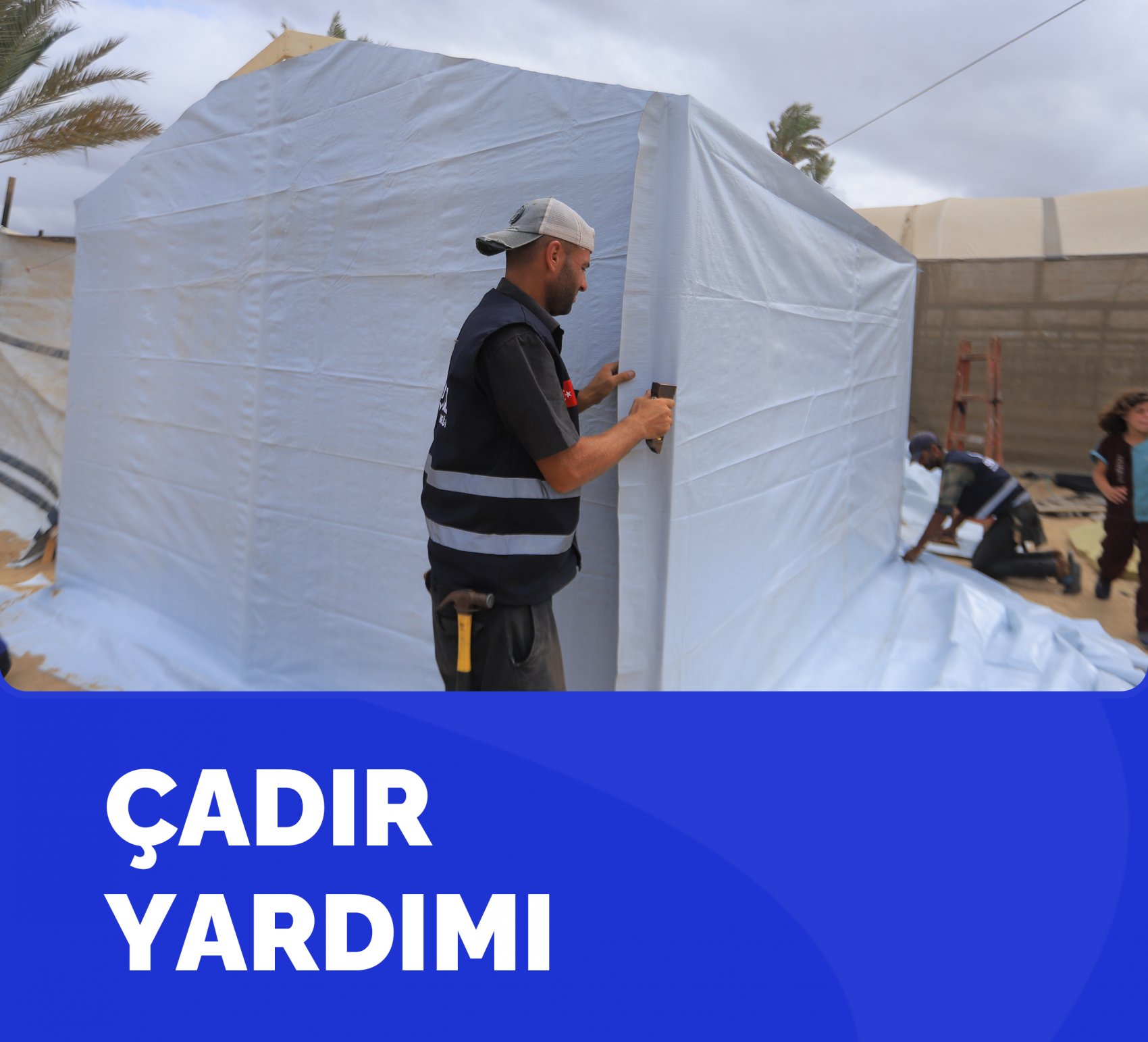 Kış ayının da gelmesiyle şiddetli yağmur ve rüzgârın etkisiyle birçok çadır kullanılamaz hale geldi. Bazı bölgelerde oluşan sel çadırları götürdü. Senabil İnsani Yardım Derneği olarak bu zorlu koşullarda yaşama tutunma çalışan ve direnen Gazze halkı için korunaklı çadırlar inşa ediyor, ailelere destek oluyoruz.