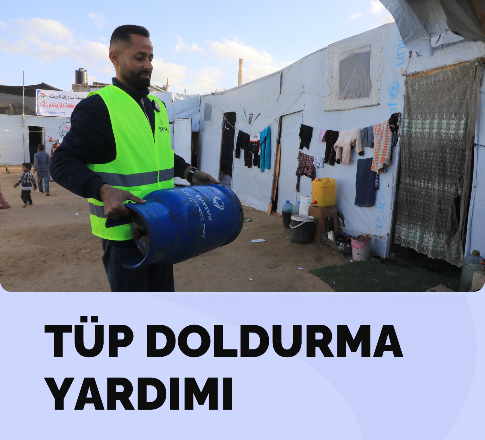 Senabil İnsani Yardım Derneği olarak, Gazze'de yerlerinden edilen Gazzelilerin kapılarını çalarak boş tüplerini alıyor, doldurarak geri teslim ediyoruz.